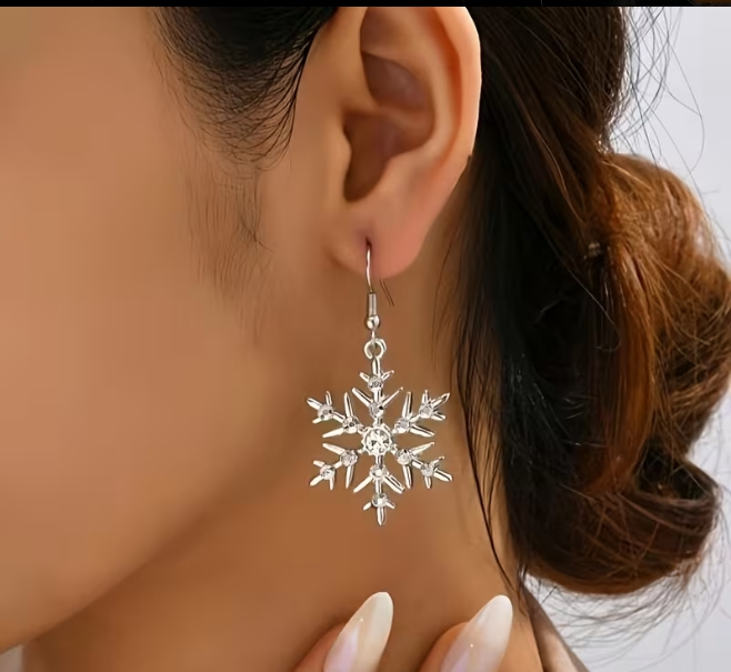 Fashionable simple Christmas snowflake earring set. Elegant zinc alloy design. Perfect for those holiday gatherings.