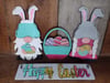 Easter Gnome set can be displayed on the interchangeable Wagon,Crate, or Bench. It had all the color of spring. They just look so happy and bright in these colors.