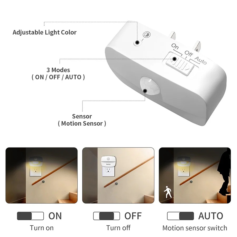 Create a safer, more comfortable home environment with this Plug-in Motion Sensor LED Night Light. With built-in infrared detection, the light turns on when it senses movement, making it ideal for nighttime trips down the hallway or bathroom.