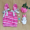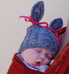 It comes in 5 sizes. There is a written and charted pattern for the body of the hat and written instructions for the ears.