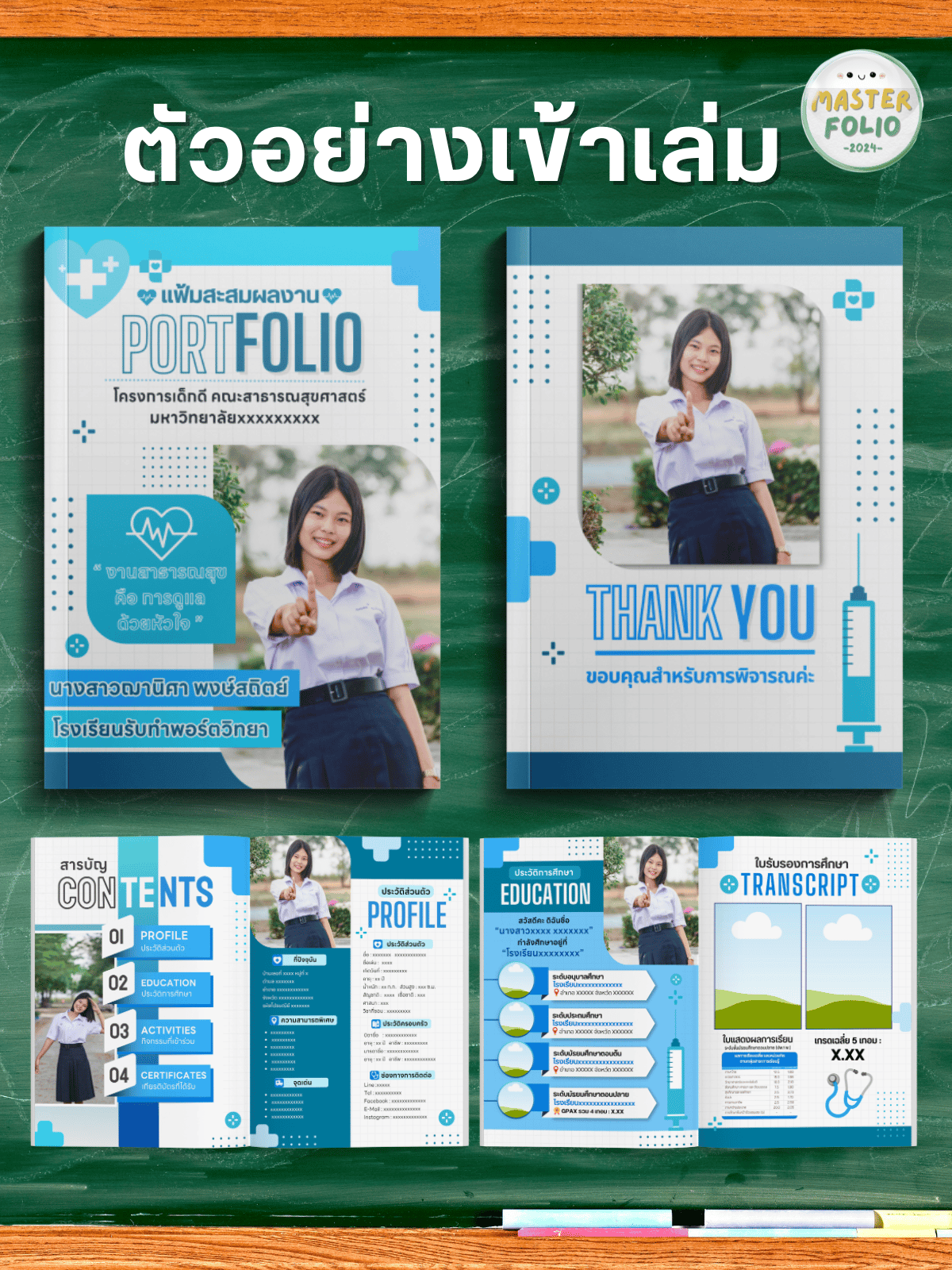 • มีโครงสร้างครบ: Preface/SOP/Contents/Profile/Education/Transcript/Activities/Certificates/Thank You