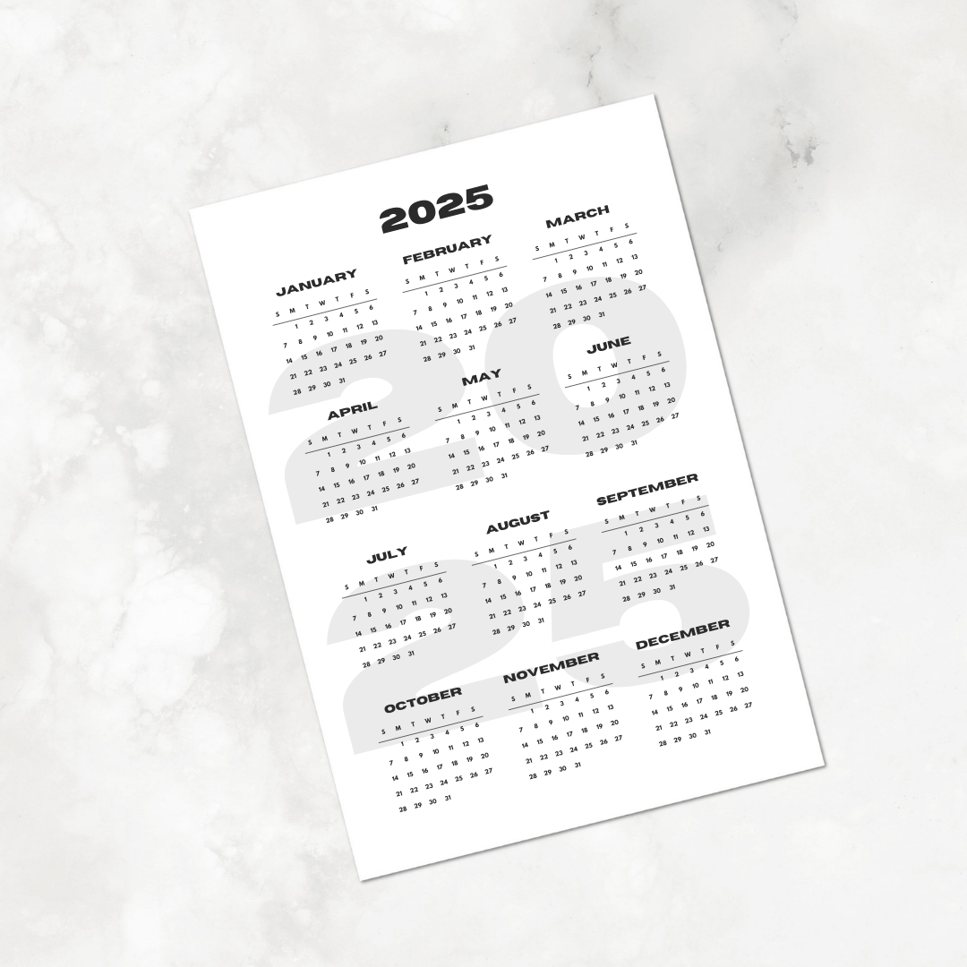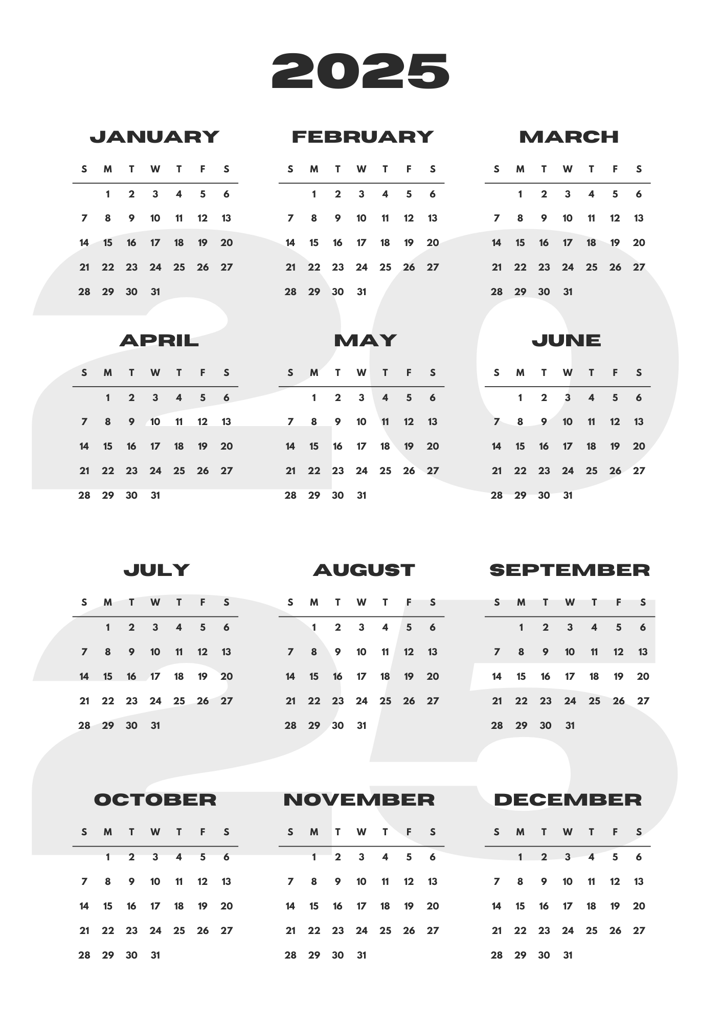 Grey Black Modern 2025 Annual Calendar