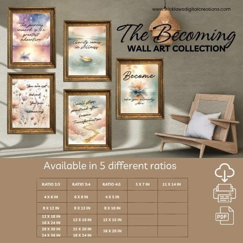 🌿 The Becoming Collection (5 printable wall art designs in multiple ratios)