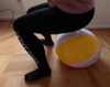 Zu Beginn der Aufnahme taste ich mich vorsichtig an den Ball heran und wage mich mit immer mehr Kraft drauf zu hüpfen, immer höher und kräftiger. Bis ich schließlich den Ball vollständig unter Kontrolle habe.