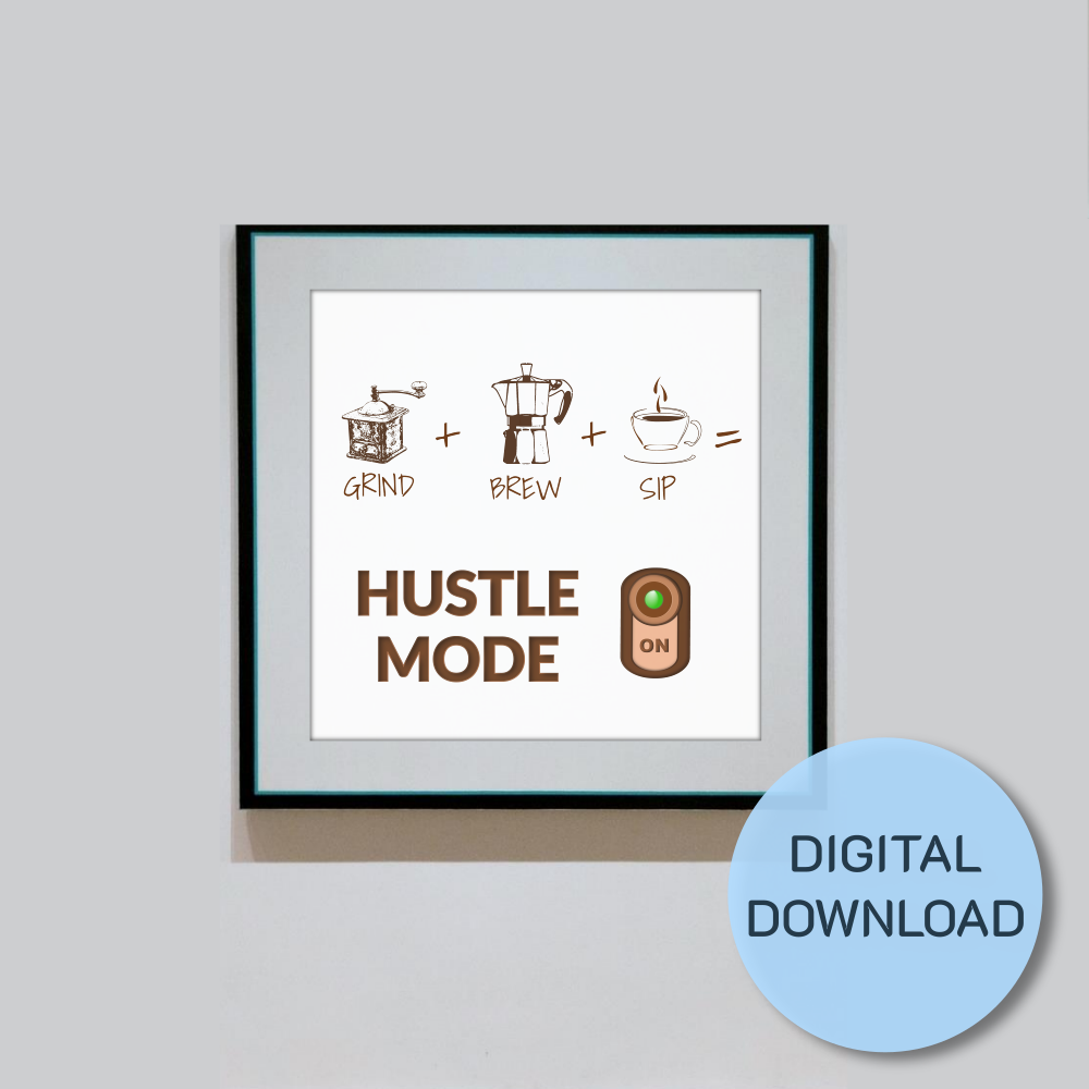 Coffee Wall Art | Coffee Print | Printable Wall Art | Hustle Mode Decor | Motivational Wall Art | Coffee Lover Art | Coffee Shop Wall Decor | Kitchen Wall Decor | Coffee Theme Decor | Digital Wall Art