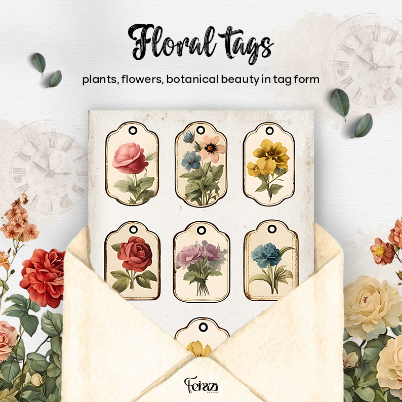 •Vintage Label Collection: ornate labels for decorating or organizing.