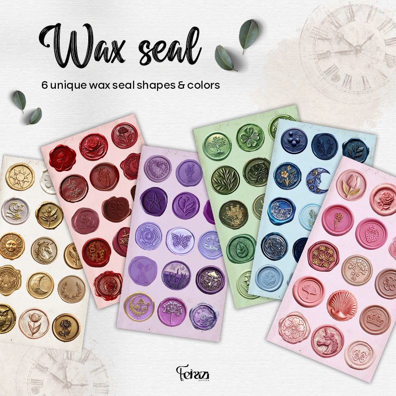 •6 Wax Seal Sheets in Different Colors: perfect for sealing digital letters or adding a royal touch.