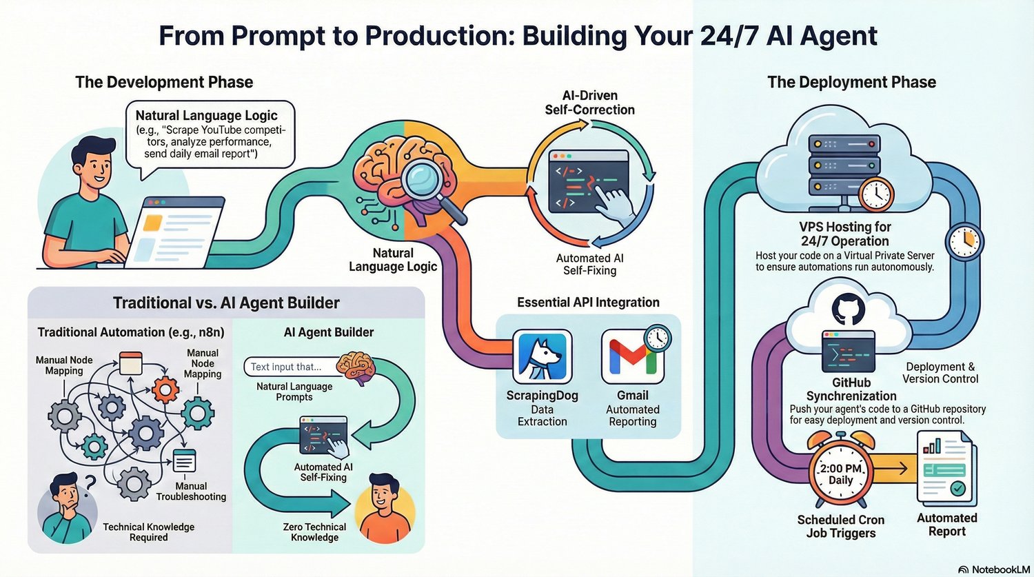 From Prompt to Production: Build a 24/7 AI Agent (Automation, VPS Hosting, GitHub Sync, Scheduled Reports & API Integrations)