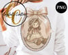 Bring soft, nostalgic charm to your creations with this beautifully illustrated vintage ragdoll PNG! This sweet hand-drawn doll, featuring delicate stitched details and timeless storybook character, is now framed inside a cottagecore-style oval frame and finished with a dainty bow for the perfect heirloom-inspired look.