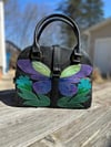 Torana was inspired by an artist rendition of a butterfly bag. Ours offers the butterfly, and we have added a dragonfly and plain version. The bag may be made in garment weight leather, vinyl or fabric.