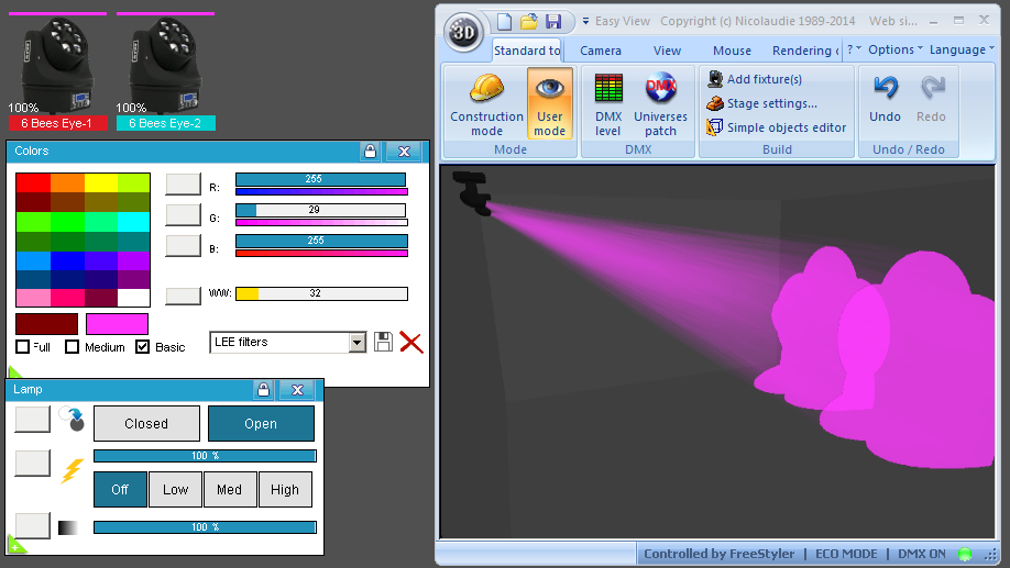 Esta Librería SSL2 está optimizada para trabajar con Magic 3d Easy View. Es decir para ver una representación 3D de las secuencias que estemos realizando con Freestyler, QLC+ o cualquier otro soft que se conecte con Magic 3d.