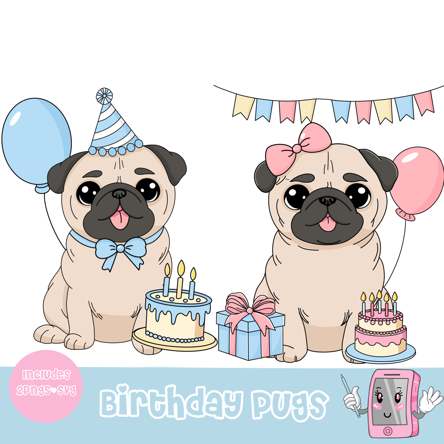 Instant download of our birthday pugs clipart includes 2pngs/svgs