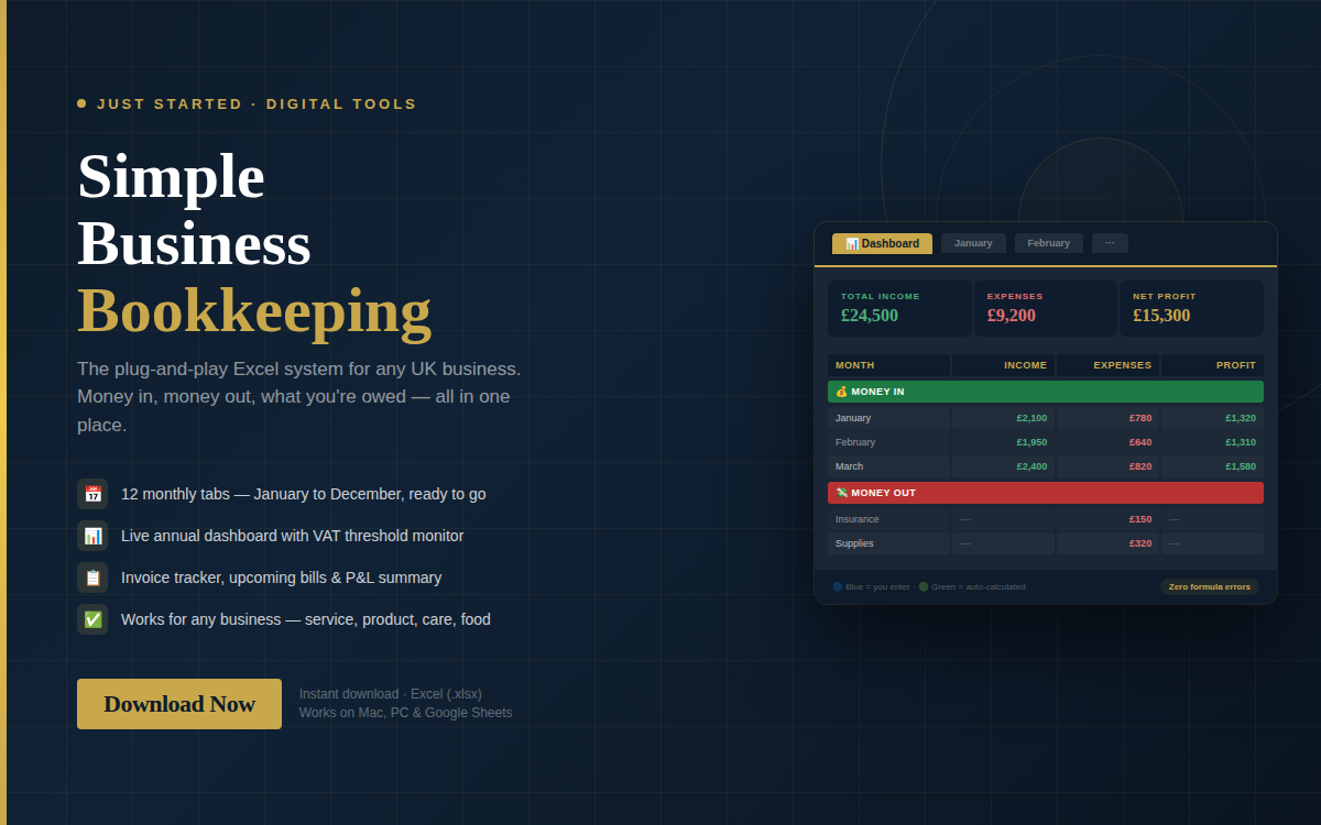 Simple Business Bookkeeping System; Plug-and-Play Excel for UK Business Owners