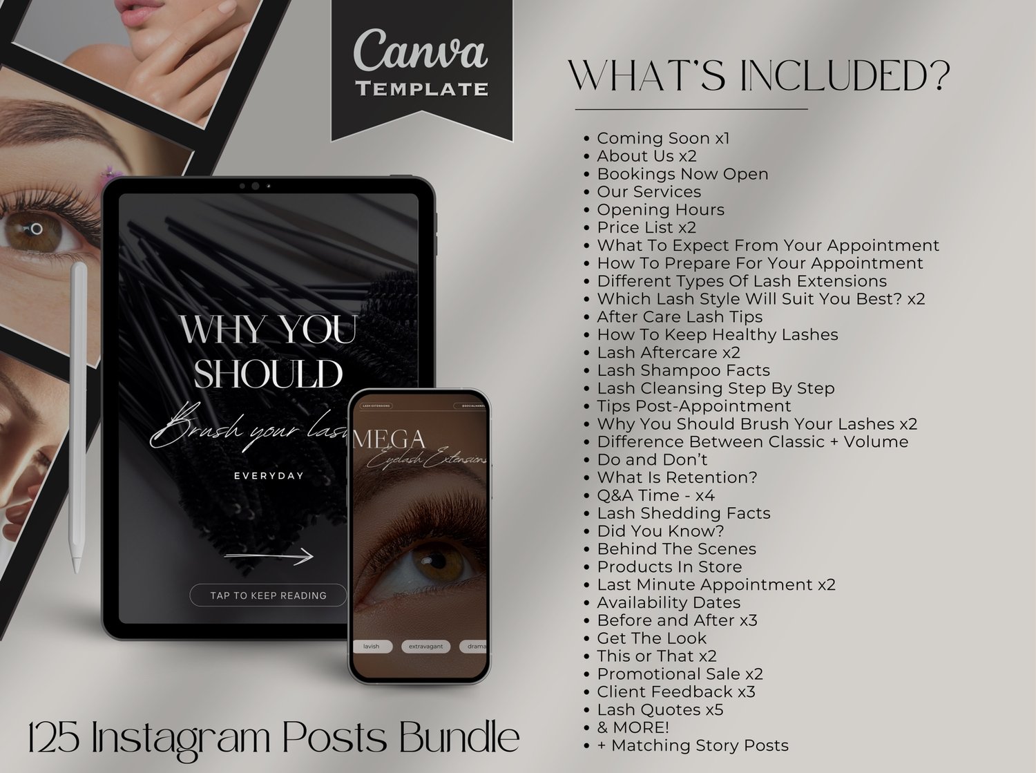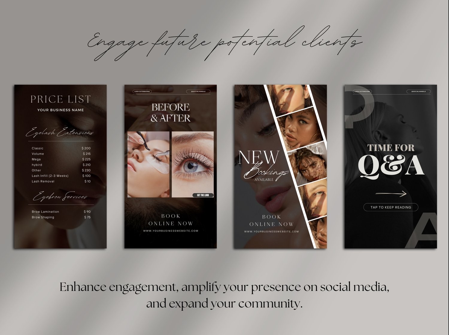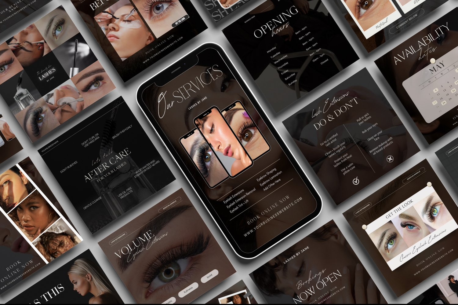 📆 Versatile Content: From promotional posts and client testimonials to educational content, behind-the-scenes glimpses, eyelash extensions quotes and SO much more - This template bundle offers a diverse range of content types to keep your audience engaged and informed.