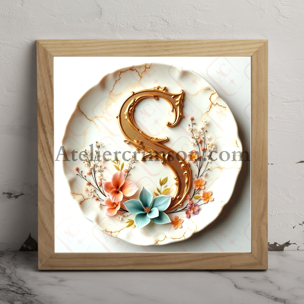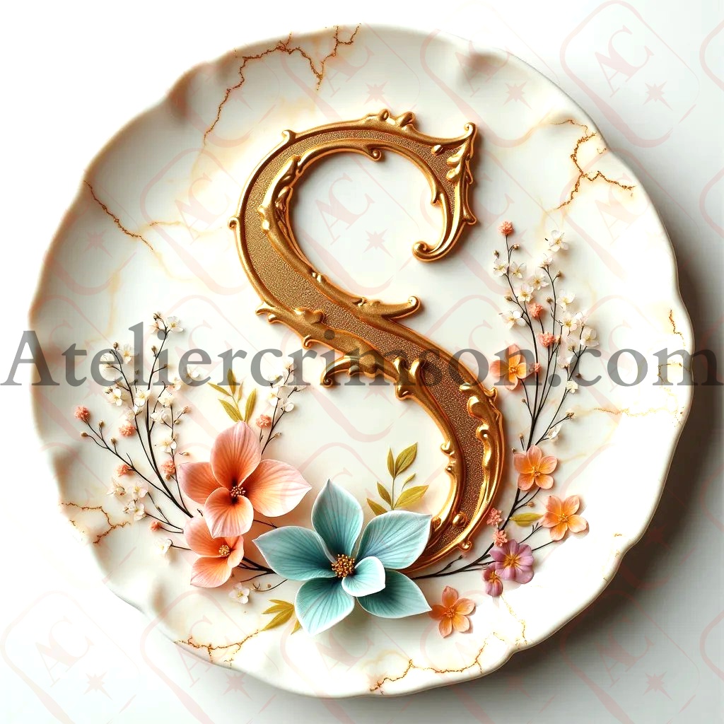 The letter S flowers and procelaine .Download Now this high quality AI-generated image, perfect for adding a touch of tranquility and creativity to any space.