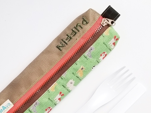 The use of contrasting coloured fabrics and zippers adds a little touch of fun to the simple design of this cutlery case.