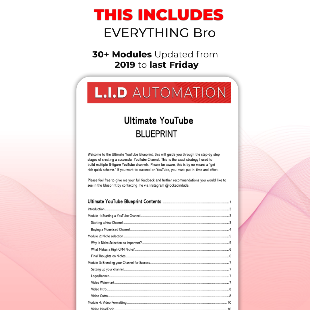 I’ll teach you how to create channels that generate $10k+ monthly and increase their digital value. Using the strategies I’ve mastered on my way to success, you’ll learn everything in a $5800 course!