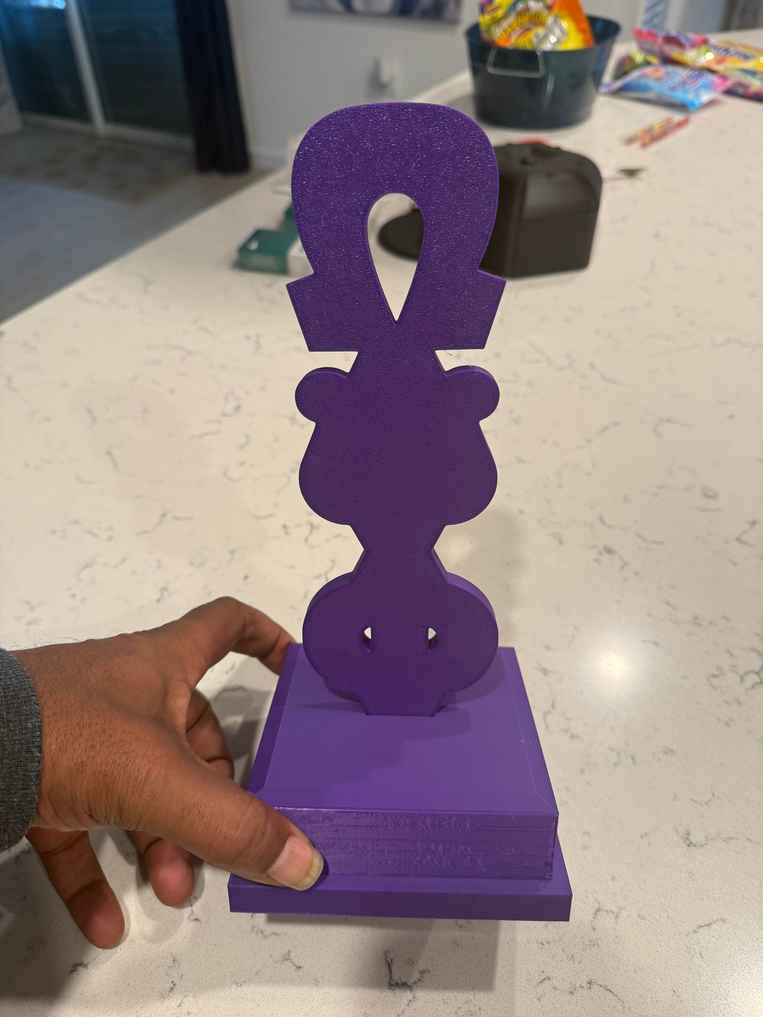 The design offers a strong, balanced structure and prints cleanly on most FDM 3D printers. Ideal for personal collections, gifts, or commemorative displays, this stand can be printed in classic purple and gold or customized to your preferred colors.