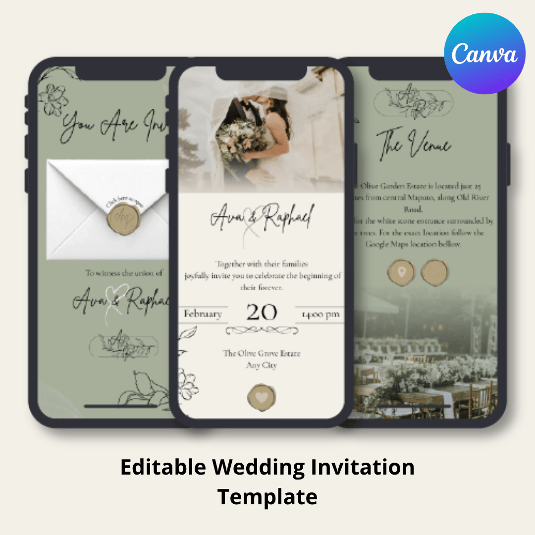 💍 ELEGANT SAGE GREEN ONLINE WEDDING INVITATION TEMPLATE | SAVE THE DATE | EDITABLE CANVA TEMPLATE