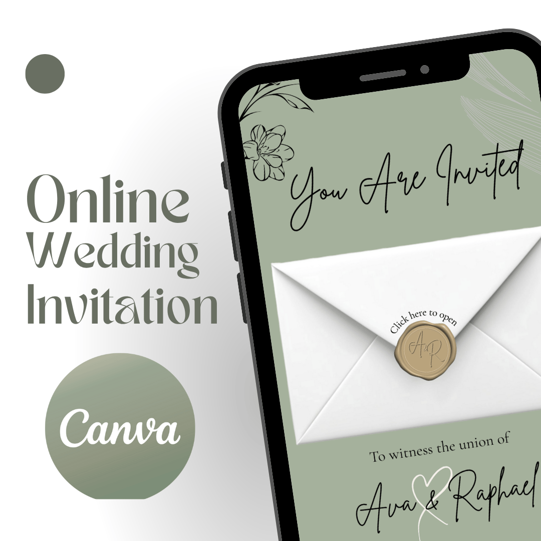Editable Custom Online Sage Green Wedding Invitation | Digital Canva Template RSVP | Elegant Modern e-Invite | Website | Instant Download