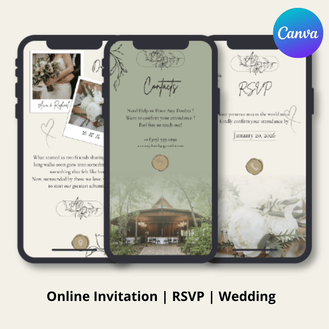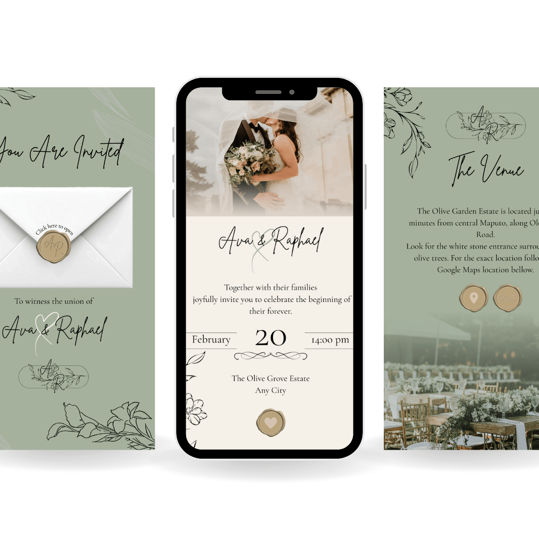 - 1 Editable and Interactive Wedding Invitation Template (1080 x 1920) ideal for phone