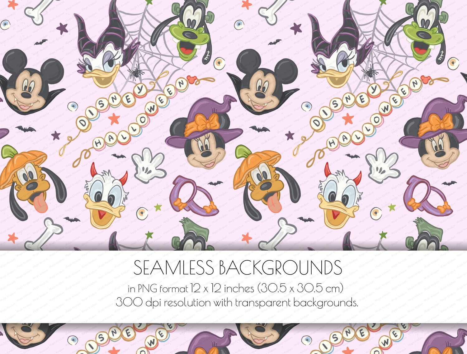 1 Disney Halloween Mickey and Friends Seamlessbackground in PNG format 12 x 12 inches (30.5 x 30.5 cm) 300 dpi resolution .