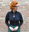 The peek-a-boo slit neckline (easy to modify higher or lower!) is trimmed with an icord bow and topped off with either a simple plain neckband, or a small collar that can be popped up for a perfectly 50s stand up collar.