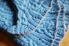 A solid color yarn is recommended, to best show off the cables, and any weight from around DK (for a small shawl) up to super bulky will work, for very different finished items. Use a bulky yarn for a big, cozy, squishy winter accessory to bundle up in; use a worsted or finer weight for a more intricate looking impressive piece of cablework, which will still be plenty squishy and warm! In worsted, the largest your shawl can get is about 40-50 inches / 100-125 cm wide, so use a heavier weight for a larger piece.
