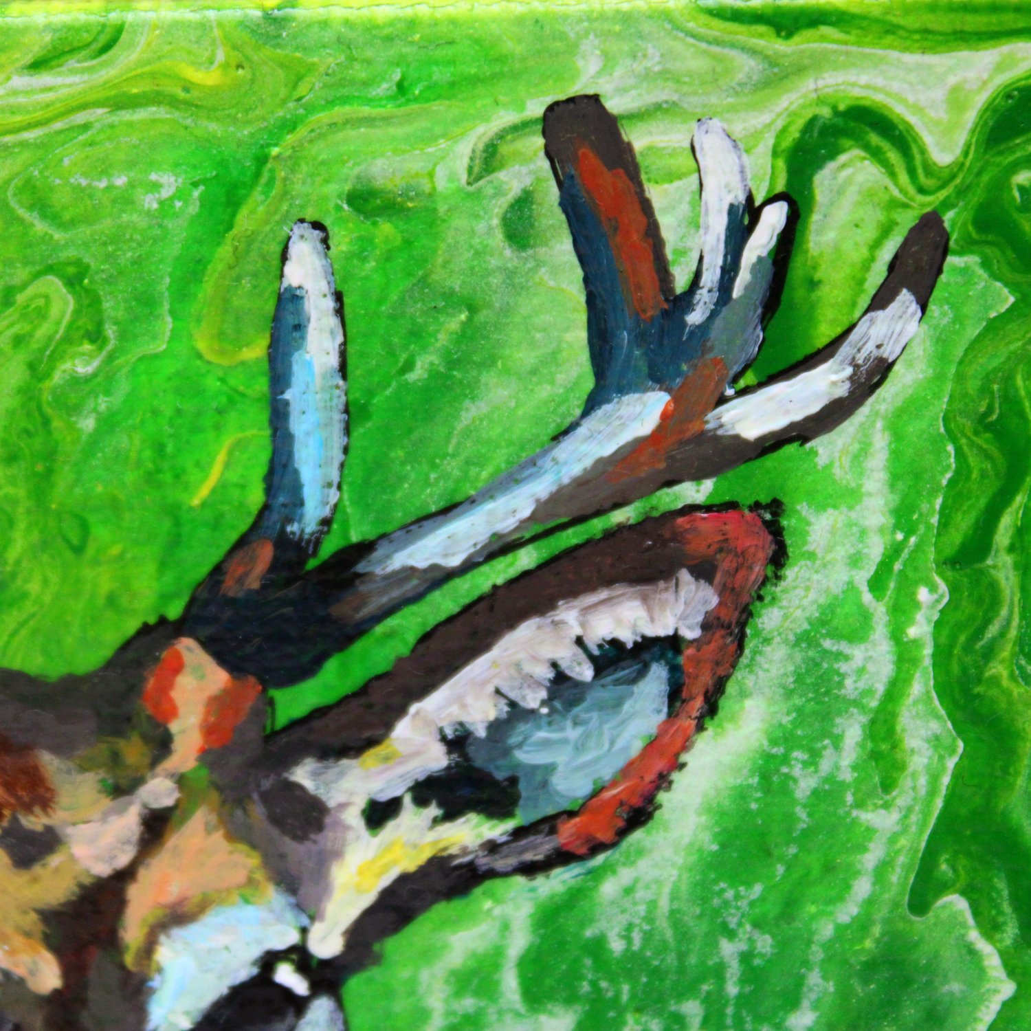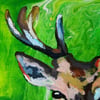 El ciervo, una criatura símbolo de la fuerza y conexión con la naturaleza, cobra vida en este lienzo lleno de color y energía. Su mirada serena y sus astas orgullosas se elevan sobre un fondo verde vibrante, como si emergiera del bosque para acompañarte en cualquier rincón. Una pieza pequeña pero poderosa, ideal para quienes buscan llevar un pedacito de naturaleza y arte en su espacio.