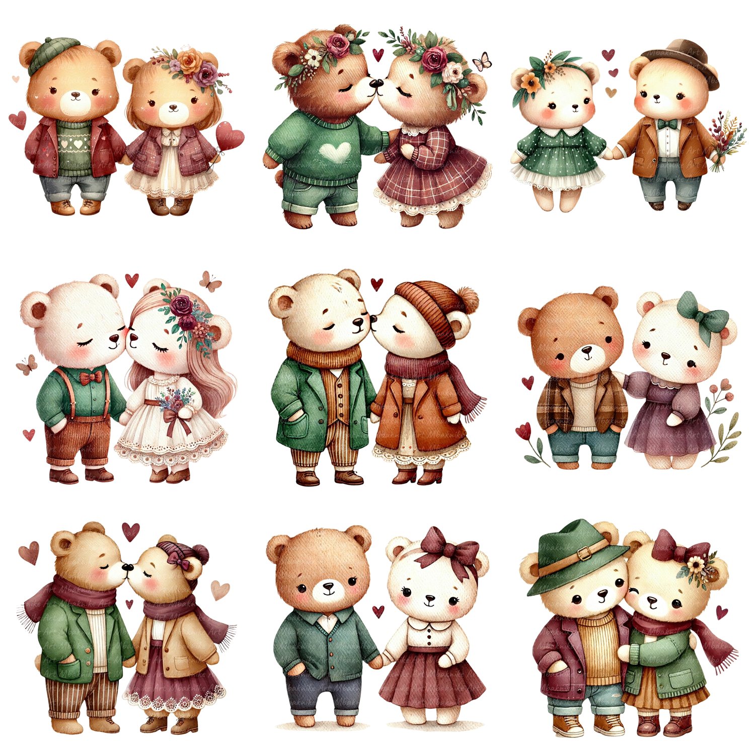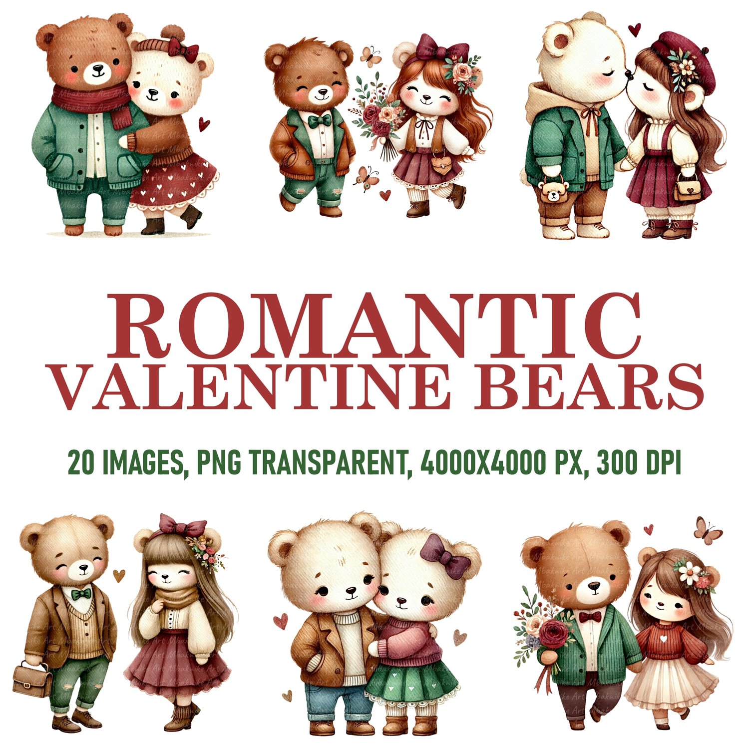 Transform your creative projects with our "Romantic Valentine Bears Clipart" collection! This digital pack includes 20 unique and whimsical images, each in PNG transparent format at a high resolution of 300 dpi and 4000x4000 px.