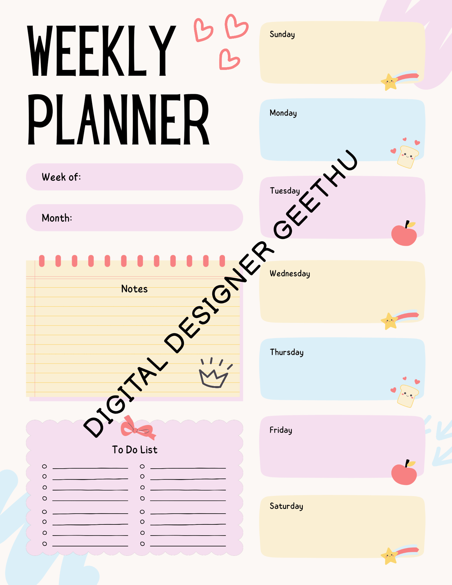 Stay organised, productive, and positive every single day with this beautiful Planner Bundle π. Designed to help you plan your tasks, manage your week, and practice daily gratitude β all in one place πΈ.
