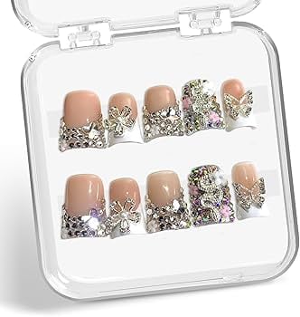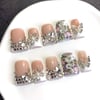 These nude bling press-on nails are designed to give you a classy, glam look with heavy rhinestone detail and statement accents π