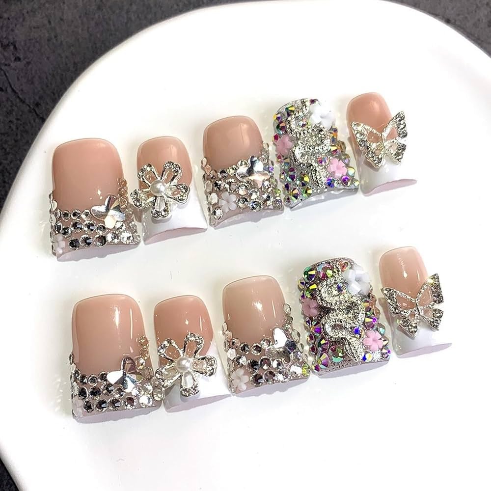 Luxury Nude Bling Butterfly Press-On Nails π β¨