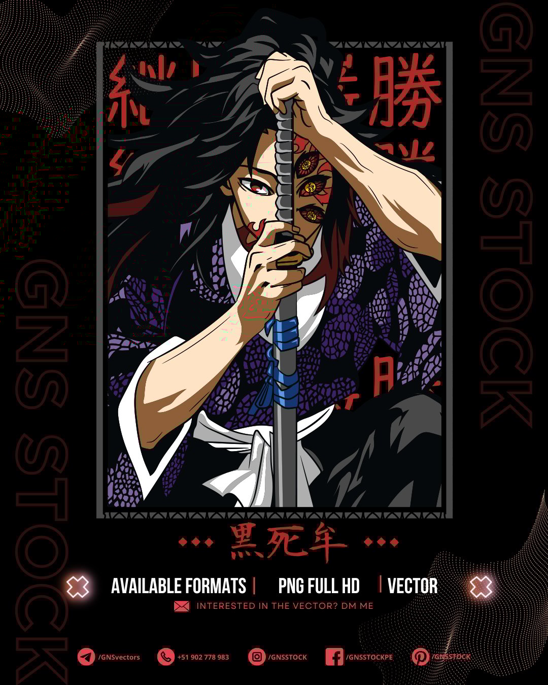 Anime Vector – Kokushibo | Demon Slayer | Design for DTF, Sublimation, T-Shirts | Files: CDR, PDF, PNG, SVG