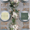 This cool menu template features a simple and minimalist layout with double-sided design in contrasting colour. It can also be easily customised to match the theme of your Big Day!