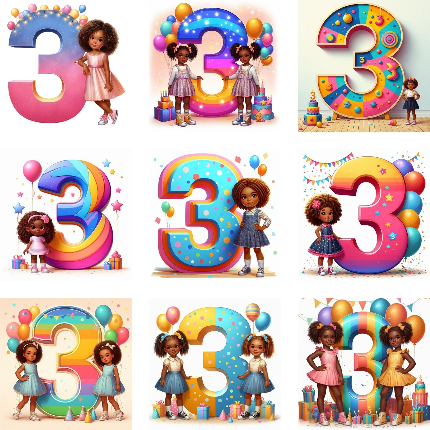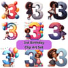 Third Birthday | Number Art | Black Girls | Baby Birthday Clip Art