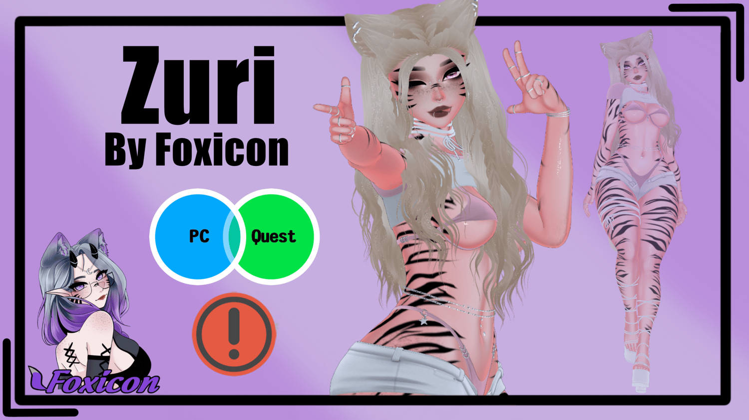 | Body by zinpia (EDITED BY ME, NO REUSE) | Head/Head Textures by DUCC#0008 (EDITED BY ME, NO REUSE) | Main Body Texture by Ying#6669 (EDITED BY ME, NO REUSE) | Hair Textures by Cicieaaa#7777 | Fluff's ToolBox | VRCFury Tool | GoGoLoco by Franada | Glasses by Salted | Braided Hair/Short Hair/Wavy Hair/Jeans/Tank Top by @Nessy! | Converse by Plaz | Wholesome! by Wholesomevr | Spring Joint/Cloud Ribbons by GM | Tiger Stripes by Vendi | Piercings/Earrings by Amey | Crop Top by Strelizias | Pigtails by Cupidz | Heart Swimsuit/Beaded Heels/Choker/Garter/Waist Chain by jule. | Tan Lines by PinkRaccoon | Crop Top/Star Swimsuit./Shorts/Sunglasses by Skeletib | Ears & Tail by JinxieWinks | Tube Top/Skirt by Lolo | Rings by DaddyIssuez | Hoop Earrings by CrypticCat | Hoodie/Sheer Top/Full Swim Top by Saikura | Floaties by D1gitalashes | Wet Skin Map by VeronicaJae | Platform Heels by Blake_CID | Sandals by The Oasis | Visor by Hayweee | Fans by Hanee_Bee | Modeled for pics - Roobsi | Showcase by carnor