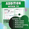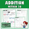 Grab these 60+ differentiated worksheets on Addition within 20. This NO Prep resource has a total of 700+ questions, covering basic drills, fluency drills and challenging brain teasers to boost your students' critical thinking skills in a fun-filled manner. It comes with self explanatory diagrams and side prompters to help you guide your students from one step to another. Cut down your prep time with this activity packed resource and watch how your students advance. This unit is suitable for math center, math lesson, homeschooling, independent practice and spiral review. BONUS! You'll get a FREE anchor chart on Addition within 20.