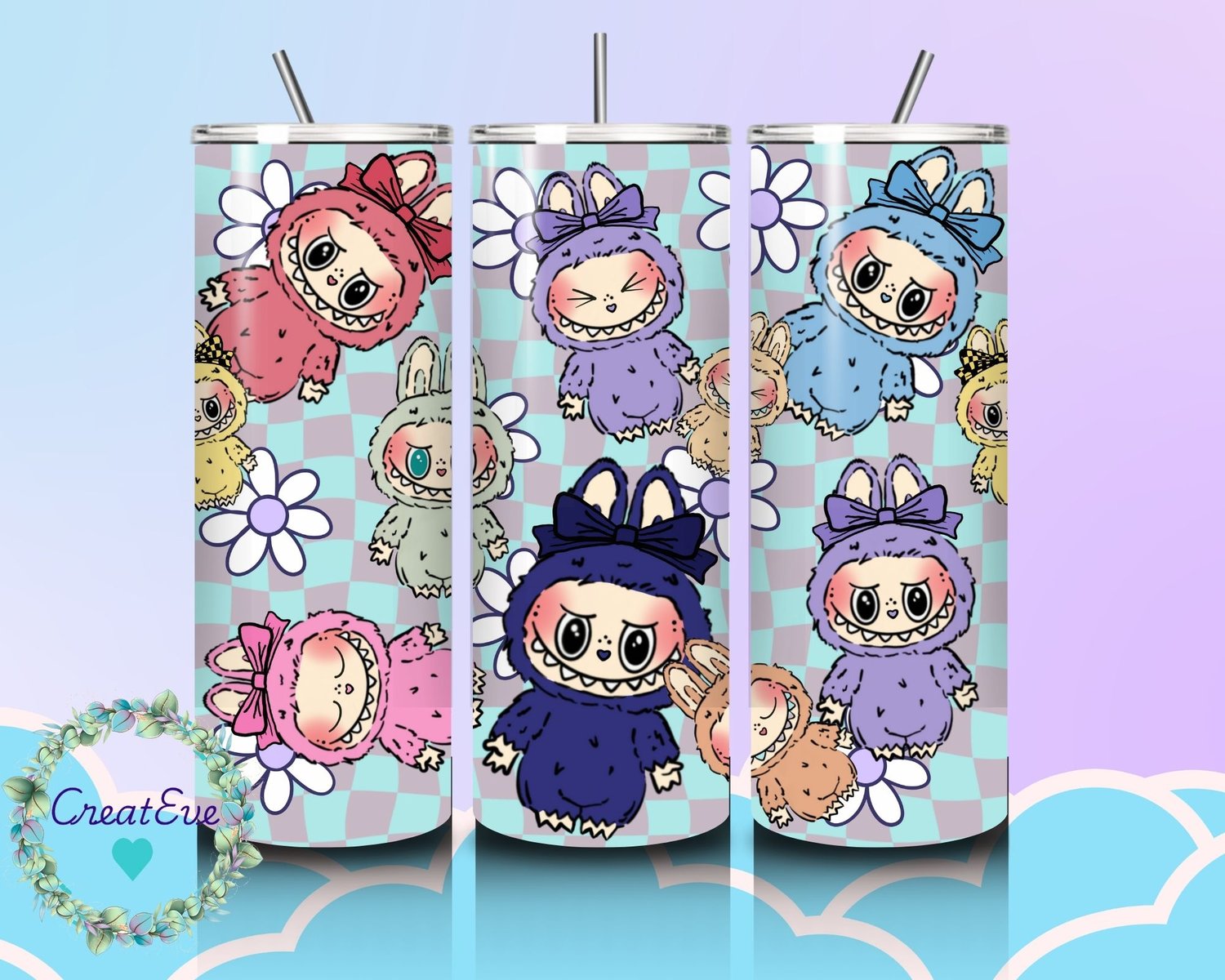 Hand Drawn Monster Doll c\Checkerboard 20oz Seamless Skinny Tumbler \Wrap PNG