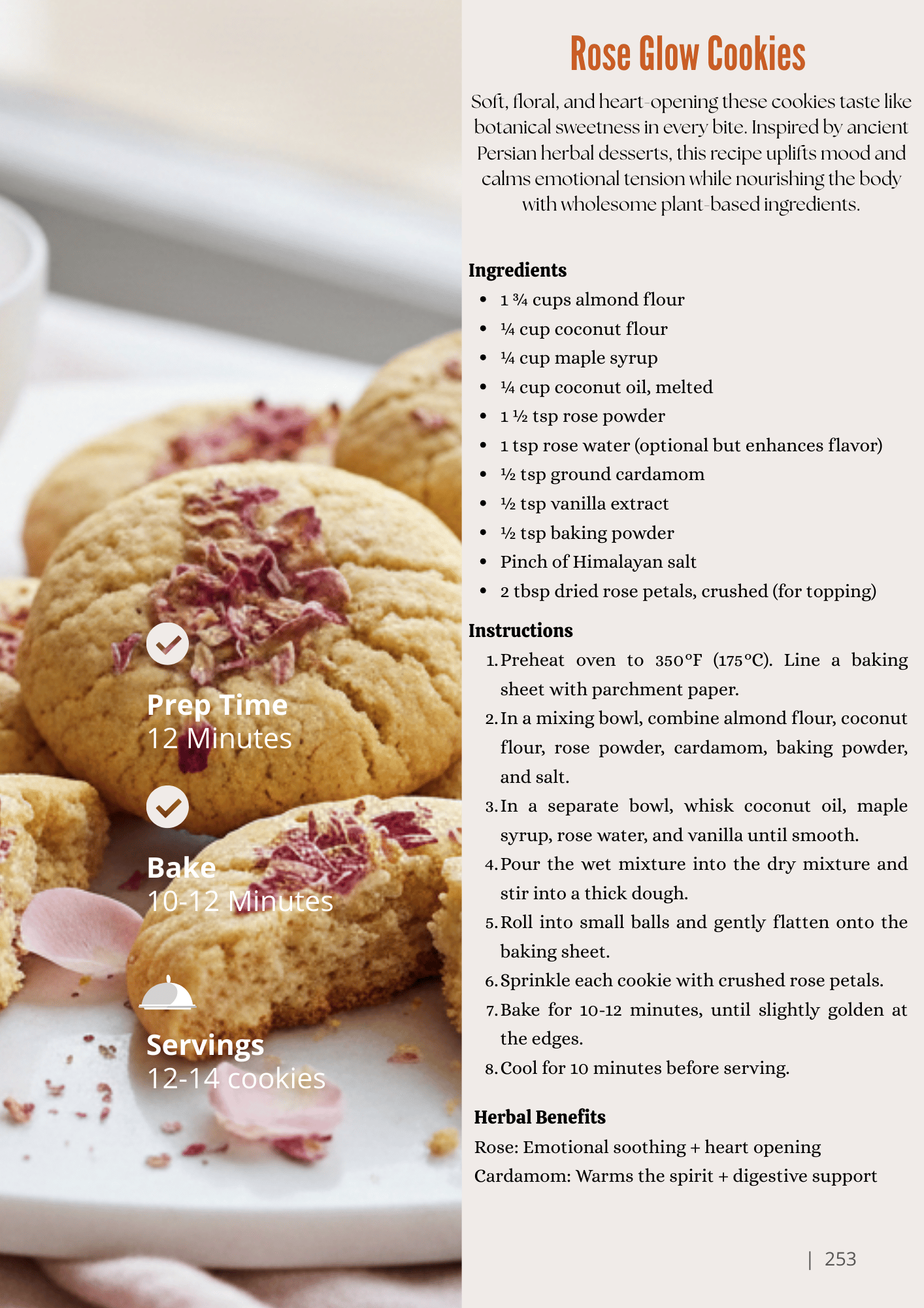 Botanical Kitchen Cookbook blends herbal wisdom with approachable recipes, guiding you from morning teas to evening meals and sleep-supportive treats. Each recipe is thoughtfully designed to integrate gentle plant allies into food you’ll actually make, no overwhelm, no complicated techniques.