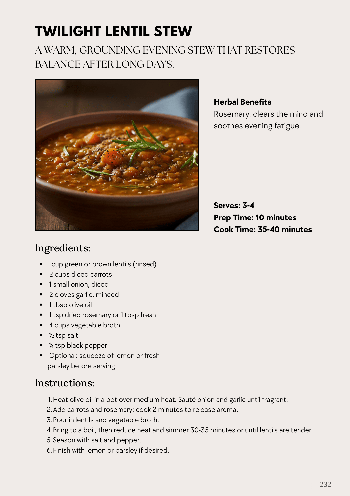 A quiet, nourishing cookbook where herbs meet everyday meals crafted to support energy, mood, focus, and rest through the rhythm of the day.