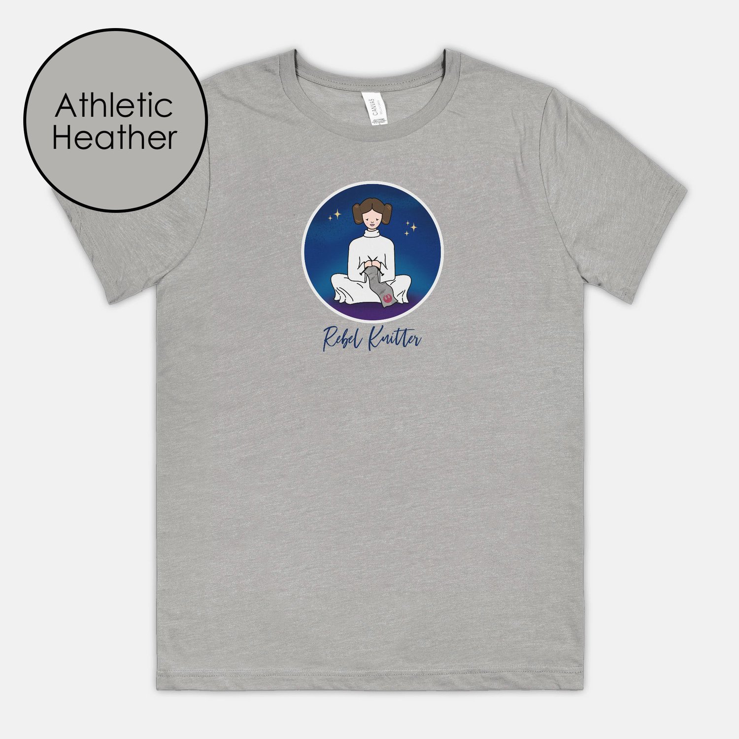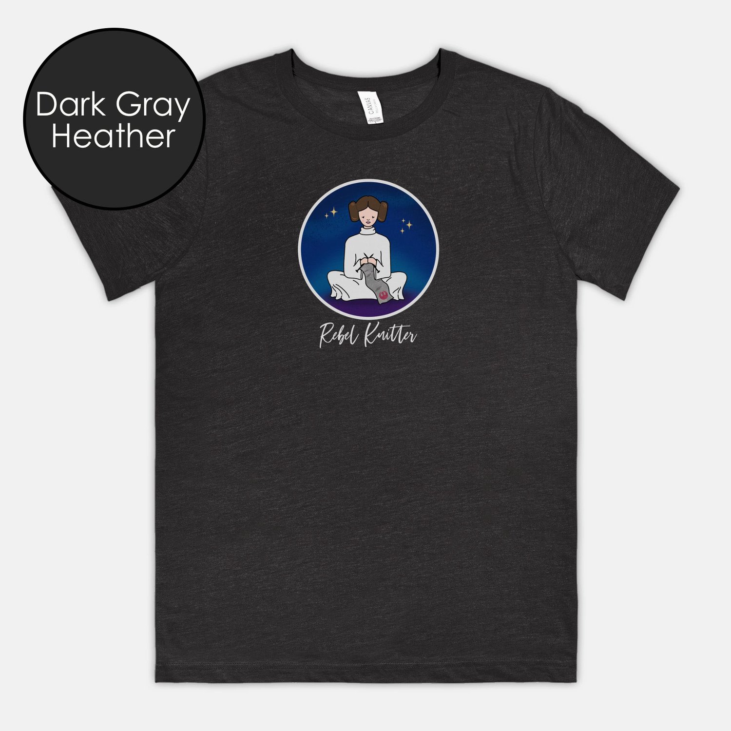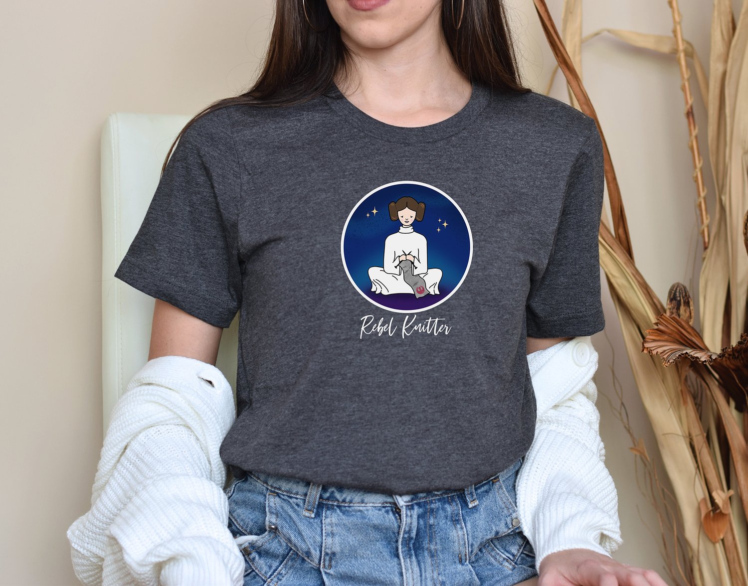 Rebel Knitter T-Shirt featuring our favorite galactic princess knitting a rebellion.