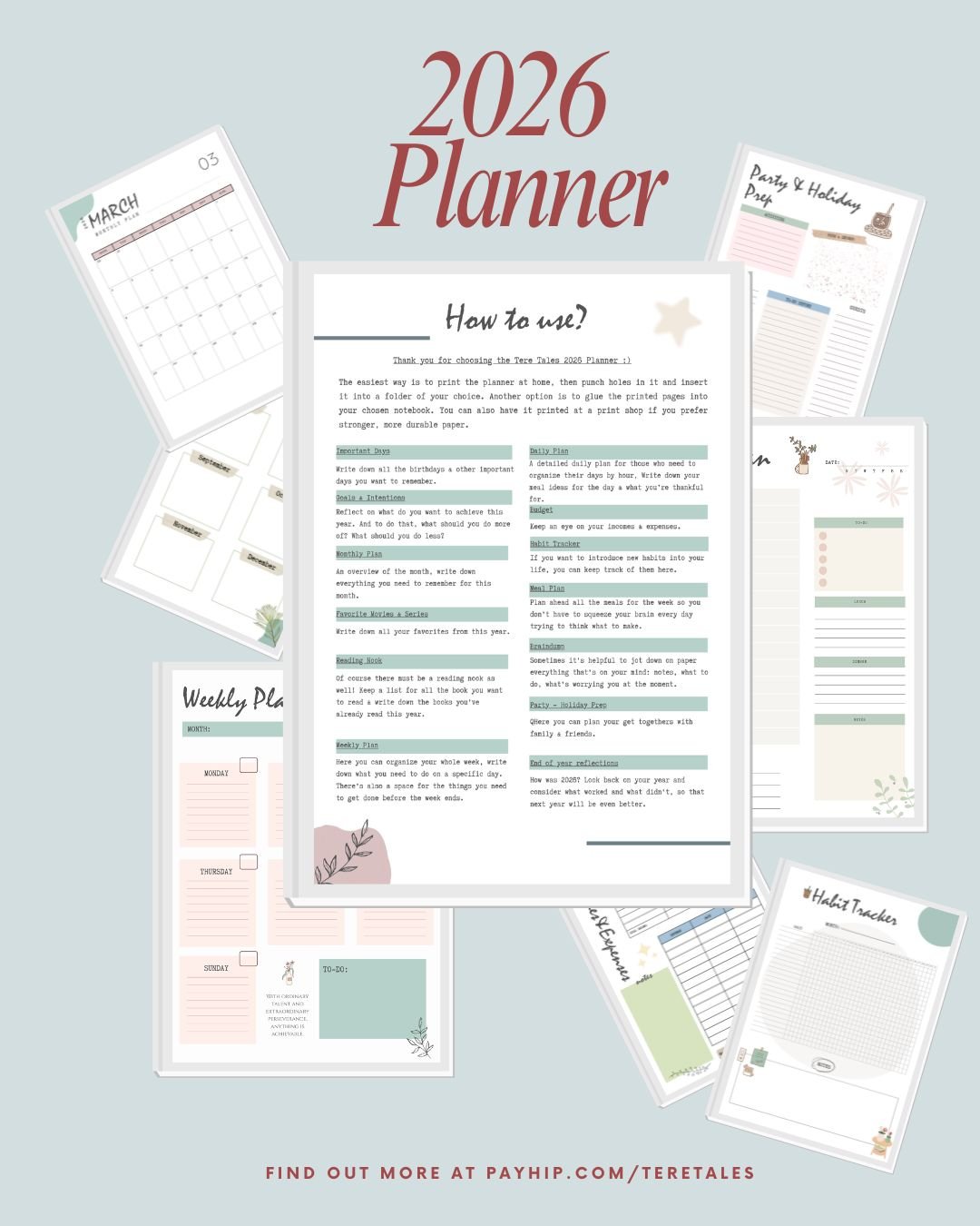 Organize your life to make the most of the new year! A printable planner for 2026 with a cute and simple design.