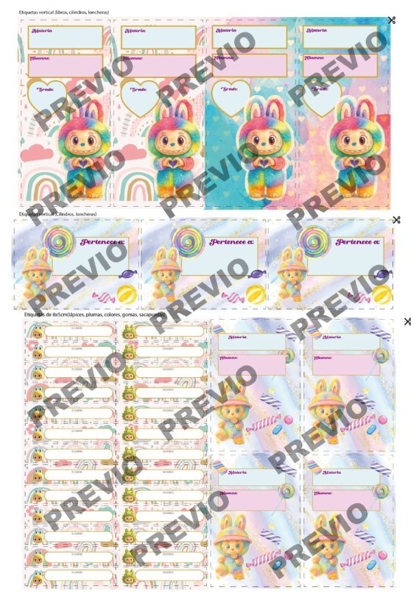 Etiquetas escolares LABUBU imprimibles
