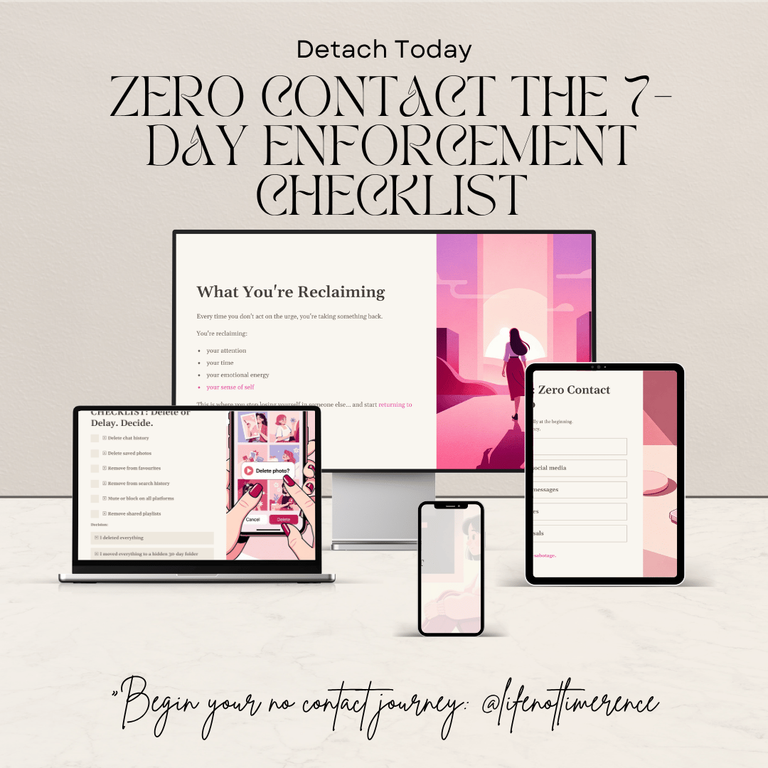 The Zero Contact Limerence Checklist is a trauma-informed, step-by-step digital system designed to help you interrupt obsession cycles, stop self-sabotage, and finally follow through on no contact.