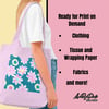 - Print-on-demand products like tote bags, pillows, and hardcover books