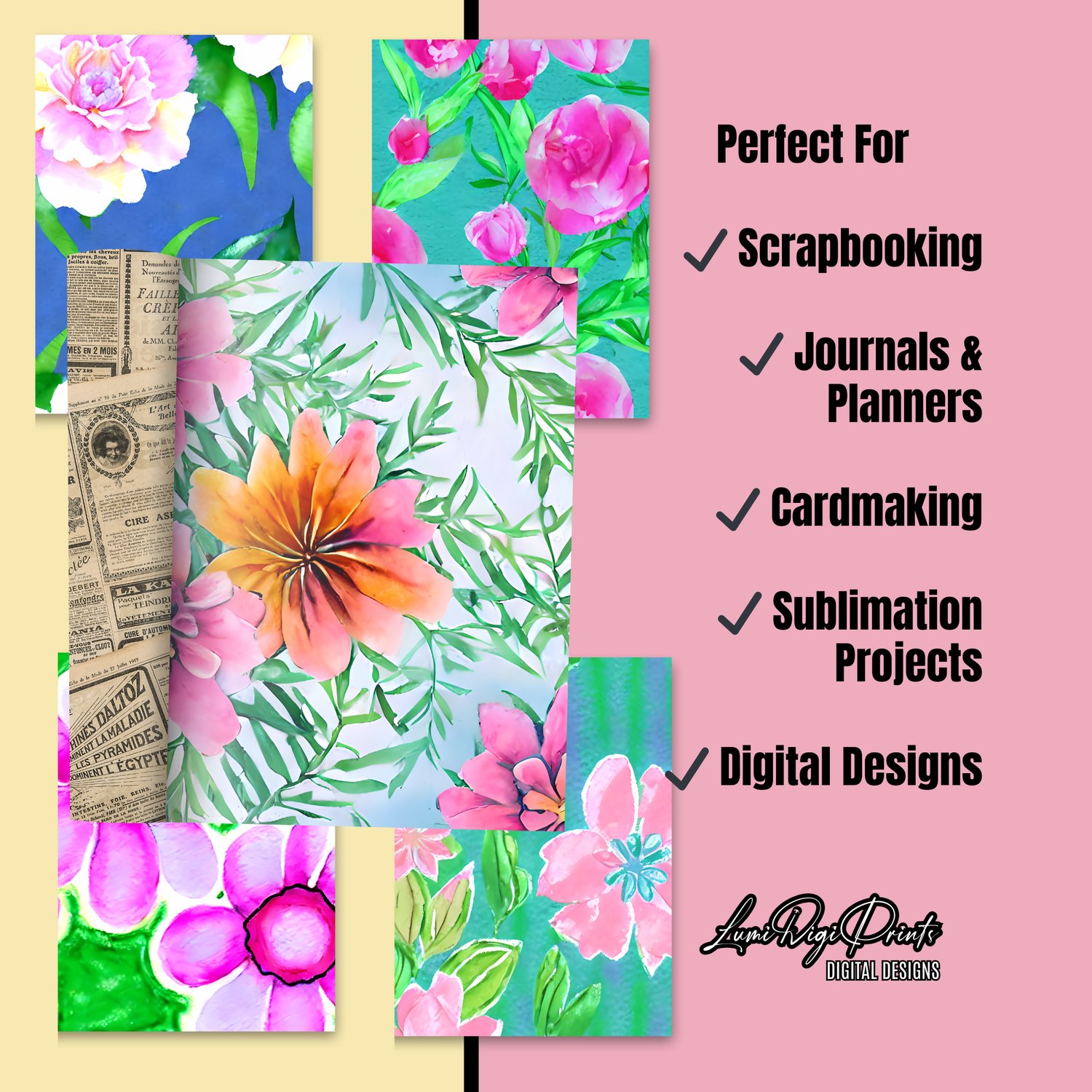 Watercolor Floral Paper Pack for Small Businesses & DIY Creators | Printable Art for Journals, Invitations, POD & Home Decor