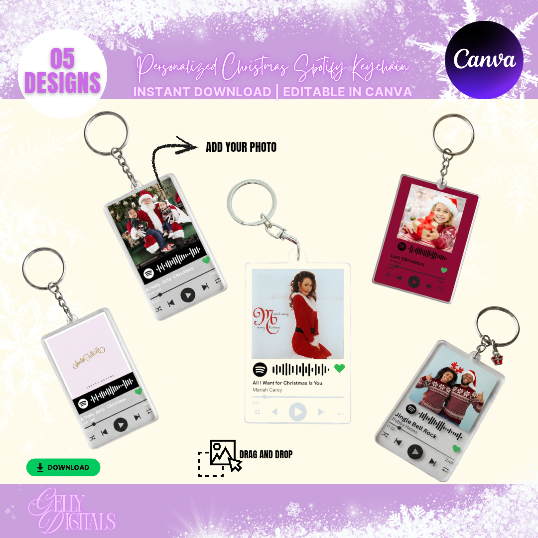Personalized Christmas Spotify Keychain Templates (5 Designs)