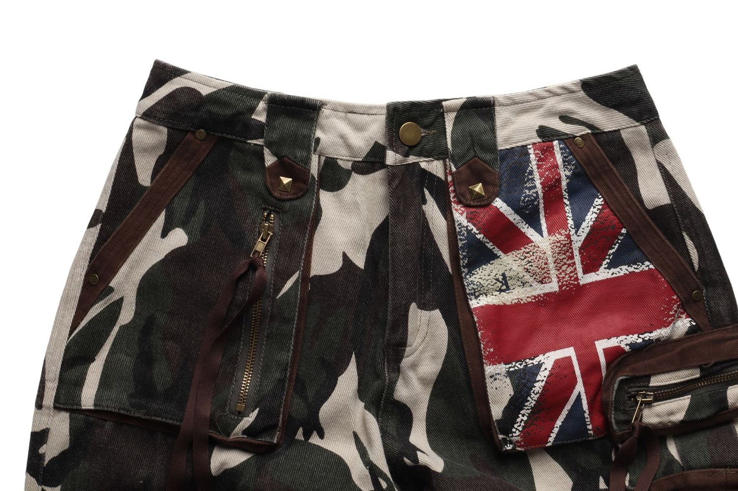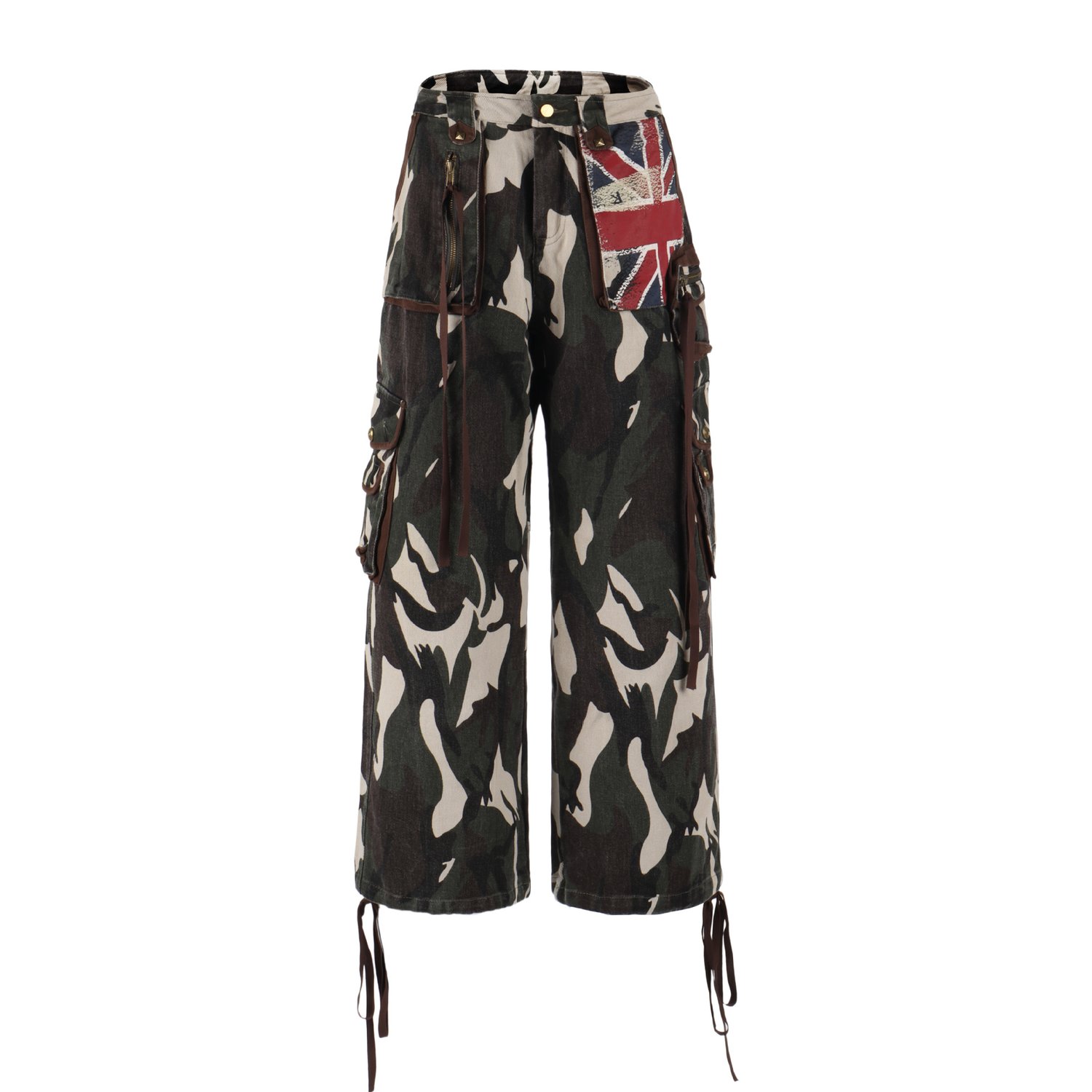 Designer retro street style punk camouflage cargo straight-leg pants
