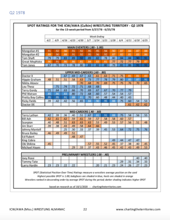 -charts and lists documenting the top wrestlers and feuds in the territory
